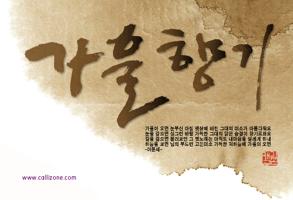 [직접쓴 캘리} 가을향기 callizone 일반 1 9383 2007.10.02 14:07 http://www.callizone.com/home/index.php + 568 가을이 익어가고 있습니다. 가을을 음미하면서 한번 만들어 보았습니다. 회원님들 감기조심 하세요^^